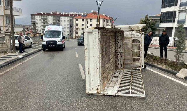 Kamyonet refüje çarparak devrildi: 2 yaralı