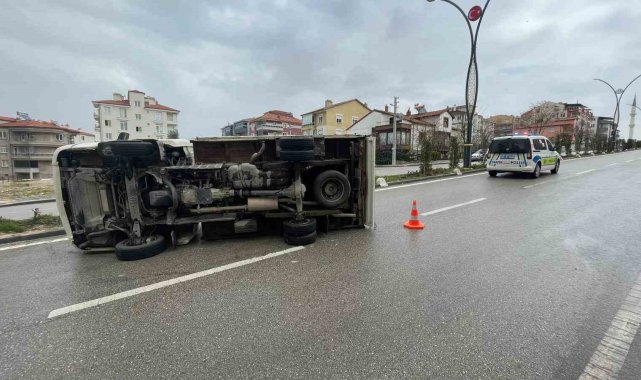 Karaman'da kamyonetin refüje çarparak devrilmesi sonucu meydana gelen trafik kazasında 2 kişi yaralandı.