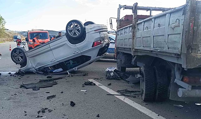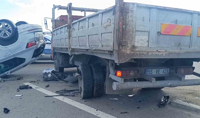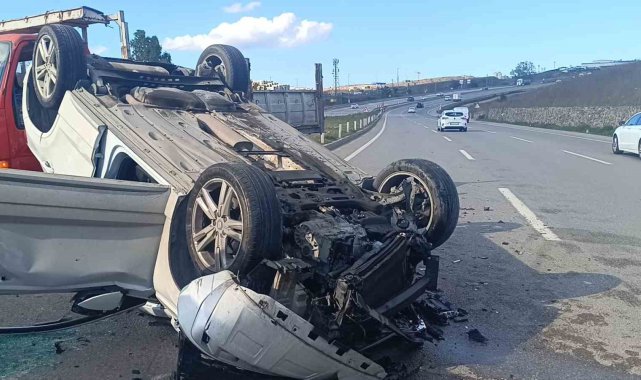 Kamyonete çarpan araç takla attı: 2 yaralı