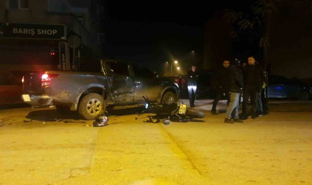 Bursa'nın İnegöl ilçesinde kamyonet ile çarpışan motosiklet sürücüsü yaralandı.