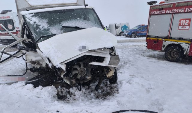 Hakkari'nin Yüksekova ilçesinde kar yağışının etkisiyle kayganlaşan yolda kamyonetlerin çarpışması sonucu yaralılardan biri hayatını kaybetti.