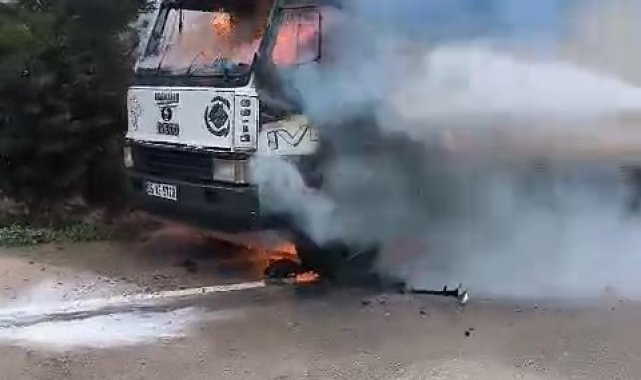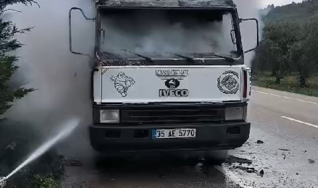 Bursa'da seyir halindeki kamyonette çıkan yangın, olay yerine itfaiye aracıyla gelen mahalle muhtarı tarafından söndürüldü.
