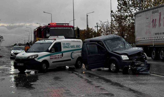 Denizli'de şerit değiştirmek isterken arkadan gelen kamyonun çarptığı hafif ticari araç yaklaşık 50 metre savruldu. Kamyonun da yoldan çıktığı kazada 1 kişi hayatını kaybederken, 2 kişi de yaralandı.Kaza, Honaz ilçesi Gürleyik Mahallesi Denizli-Afyon kara yolunda meydana geldi. Edinilen bilgilere göre, Denizli istikametinden Afyon yönüne seyir halinde olan Halil İbrahim Ekiz idaresindeki 48 GC 751 plakalı hafif ticari araç, şerit değiştirmek için ani manevra yaptı. Bu sırada aynı yönden gelen 48 HH 634 plakalı kamyon, yağış nedeniyle kayganlaşan yolda duramayınca Halil İbrahim Ekiz idaresindeki araca çarptı. Çarpmanın etkisiyle kamyon, yoldan çıkarak refüje çıkarken hafif ticari araç ise 50 metre savruldu. Kazayı gören çevredeki vatandaşlar durumu 112 Acil Çağrı Merkezi'ne bildirdi. İhbar üzerine bölgeye sağlık, polis, itfaiye ve jandarma ekipleri sevk edildi.Bölgeye gelen sağlık ekipleri Halil İbrahim Ekiz'in olay yerinde hayatını kaybettiğini belirledi. Yanında yolcu konumda oturan eşi N.E. ve kamyon sürücüsüne ise olay yerinde yapılan müdahalelerin ardından ambulans ile en yakın hastaneye sevk etti.Halil İbrahim Ekiz'in cenazesi ise otopsi yapılmak üzere adli tıp kurumu morguna kaldırıldı. Hastaneye kaldırılan eşi N.E.'nin durumu ağır olduğu kamyon sürücüsünün ise hayati tehlikesinin bulunmadığı öğrenildi.Kaza ile ilgili soruşturma başlatıldı.