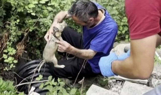 Sakarya'nın Erenler ilçesinde yürekleri ısıtan bir kurtarma operasyonu gerçekleşti. Bir fabrikanın içinde yaşamını sürdüren yavru köpeklerden biri, tesisteki derin su kanalına düştü. Durumun haber verilmesi üzerine harekete geçen Erenler Belediyesi ekipleri, küçük dostu hayata yeniden bağladı.
