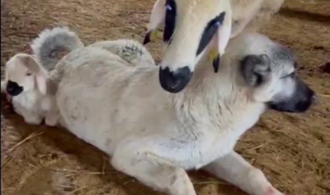 Sivas'ta kangal köpeği ile koyun ve kuzu arasında gözlemlenen duygusal bağ, izleyenleri duygulandırdı. Uzman kangal yetiştiricisi Hüseyin Yıldız ise sert yapısıyla bilinen kangalların koyunlara karşı şefkat dolu yaklaşımına vurgu yaparak, iki hayvan arasındaki dayanışmanın önemini anlattı.