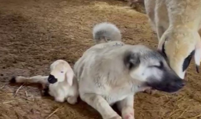 Kangal'ın koyun ve kuzu ile olan yakınlığı dikkat çekti
