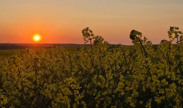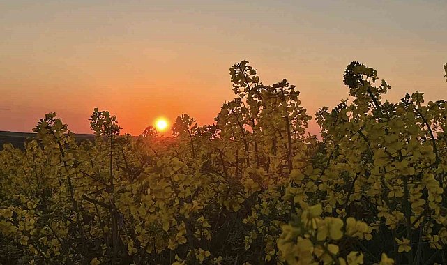Tekirdağ'ın Hayrabolu ilçesinde kanola tarlaları, gün batımında ortaya çıkan renk cümbüşüyle görsel şölen sundu. Sarının en canlı tonlarına bürünen tarlalar kızıl gün batımıyla birleşince eşsiz manzaralar oluşturdu.İlçenin kırsal bölgelerinde geniş alanlara ekilen kanola bitkisi bahar aylarında açan çiçekleriyle dikkat çekerken, gün batımında oluşan ışık oyunları doğaseverlerin ve fotoğraf tutkunlarının ilgisini çekti. Özellikle akşam saatlerinde güneşin ufuk çizgisine yaklaşmasıyla birlikte gökyüzünde oluşan turuncu ve kızıl tonlar, sarı kanola tarlalarıyla bütünleşerek etkileyici görüntüler ortaya çıkardı.Vatandaşlar bu eşsiz manzarayı cep telefonlarıyla görüntülerken, bazı fotoğrafçılar da bölgeye gelerek doğanın sunduğu bu anları ölümsüzleştirdi. Kanola tarlalarının oluşturduğu bu doğal güzellik, bölge turizmine de katkı sağlıyor.