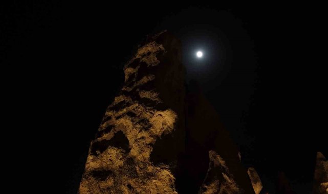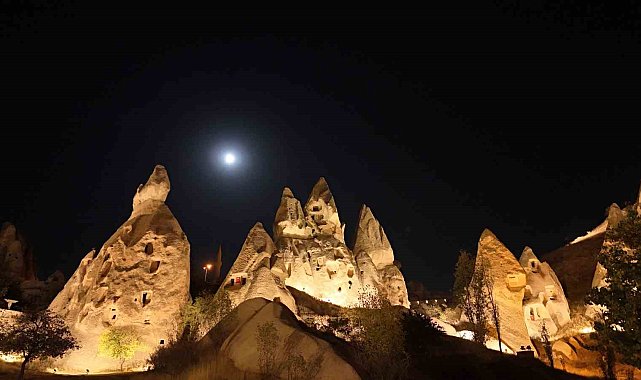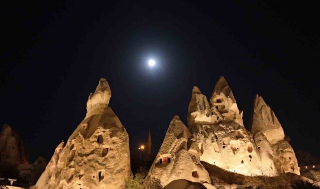 UNESCO Dünya Doğal ve Kültürel Mirası Listesi'nde yer alan ve her yıl milyonlarca turistin ziyaret ettiği Kapadokya'da "Kunduz Süper Ay"ı, peribacaları ile kartpostallık görüntüler ortaya çıkardı.