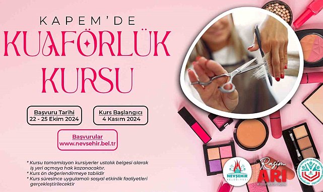 Nevşehir Belediyesi Kapadokya Eğitim Merkezi (KAPEM)'nde, açılacak olan Kuaförlük Kursu için kayıtlar başlıyor.