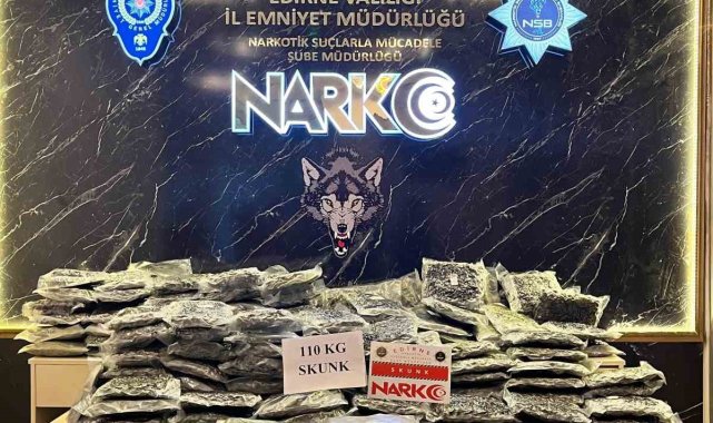 Edirne'de Kapıkule Sınır Kapısı'nda Türkiye'ye giriş yapan bir tırda piyasa değeri yaklaşık 20 milyon Türk Lirası olan 110 kilogram uyuşturucu ele geçirildi.Alınan bilgiye göre, Edirne Emniyet Müdürlüğü Kaçakçılık ve Organize Suçlarla Mücadele, Narkotik Suçlarla Mücadele ve İstihbarat Şube Müdürlüğü ekipleri Kapıkuke Sınır Kapısından Türkiye'ye giriş yapan bir tırı takibe aldı. Ekipler, gümrük işlemlerinin tamamlanmasının ardından tırı durdurdu. Hassas burunlu narkotik dedektör köpeğin de yardımıyla tırda yapılan aramada piyasa değeri yaklaşık 20 milyon Türk Lirası olan 110 kilogram skunk ele geçirildi.Gözaltına alınan tır sürücüsü Z.A. işlemlerinin tamamlanmasının ardından çıkarıldığı adli makamlarca tutuklandı.