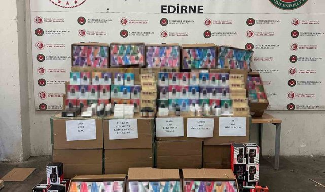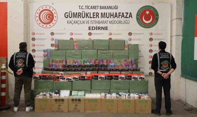 Edirne'de Kapıkule Gümrük Kapısı'nda gerçekleştirilen operasyonda milyonlarca lira değerinde kaçak eşya ele geçirildi.Edirne Gümrük Muhafaza Kaçakçılık ve İstihbarat Müdürlüğü ekipleri, Ticaret Bakanlığı'nın analiz programları üzerinden yaptıkları risk değerlendirmesi sonucu şüpheli görülen bir tır aracını takibe aldı. Türkiye'ye giriş yapmak üzere Kapıkule Gümrük Sahası'na gelen araç, X-Ray taramasına sevk edildi.Yapılan taramada şüpheli yoğunluk tespit edilmesi üzerine araç, detaylı kontrol için arama hangarına alındı. Burada gerçekleştirilen aramalarda, dorsenin arka kısmında ve yasal yük üzerine gizlenmiş halde; torbalar, koliler ve bir valiz içerisinde çok sayıda kaçak ürün bulundu.Aramalarda toplam 10 bin 400 adet elektronik sigara, 720 bin adet sigara filtresi, 84 adet oto yedek parça, 215 kutu vitamin ve kişisel bakım ürünü ile 2 bin 520 adet ilaç ele geçirildi.Olayla ilgili olarak Edirne Cumhuriyet Başsavcılığı tarafından 1 şüpheli hakkında soruşturma başlatıldı.