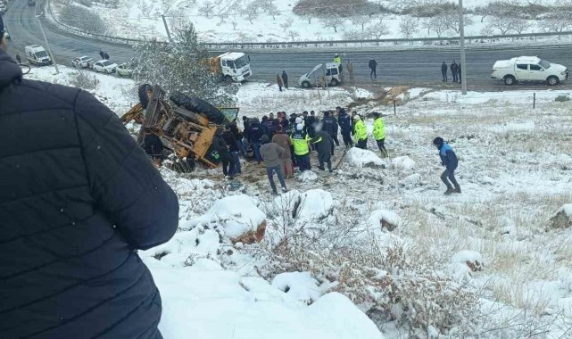 Kar temizliği yapan iş makinesi devrildi: 1 yaralı