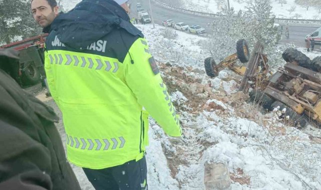 Şanlıurfa'nın Halfeti ilçesinde kar temizliği yapan iş makinesinin devrilmesi sonucu sürücü yaralandı.
