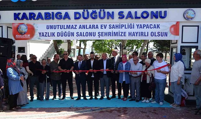 Çanakkale'nin Biga ilçesine bağlı turizm merkezi Karabiga beldesinde yazlık düğün salonunun açılışı gerçekleştirildi.Karabiga Belediyesi tarafından gerçekleştirilen yazlık düğün salonu açılış törenine, AK Parti Çanakkale Milletvekili Ayhan Gider, Biga Kaymakamı Ercan Kayabaşı, Karabiga Belediye Başkanı Ahmet Elbi ve çok sayıda vatandaş katıldı.Açılış töreninde konuşan Karabiga Belediye Başkanı Ahmet Elbi, burada Karabiga için önemli ve güzel bir hizmetin açılışı vesilesiyle toplandıklarını belirterek, "Karabiga'mızda sosyal yaşamı güçlendirerek hemşehrilerimizin en güzel günlerine ev sahipliği yapacak olan yazlık düğün salonumuzun açılışını büyük bir mutluluk ve gururla gerçekleştiriyoruz. Bu proje sadece bir düğün salonu değil, estetik anlayışı, mimari dokusu ve sosyal alanlarıyla Karabiga'ya yakışır bir alandır. Düğün salonumuzda yer alan geniş ve ferah gelin odası, çocuklarımız için güvenli bir oyun parkı, ihtiyaçlara cevap verecek şekilde planlanan depo alanı, dinlenmek ve keyifli vakit geçirmek isteyenler için ise teras ve kafe alanı ile vatandaşlarımızın her türlü beklentisine karşılık verecek şekilde tasarlanmıştır. Ayrıca çevresinde yapılan peyzaj düzenlemeleri ve mimari estetikle Karabiga'nın vizyonuna uygun modern bir görünüm kazandırmıştır. Söz verdiğimiz gibi açılışımıza özel olarak bu salonda evlenecek ilk 5 çiftimiz ücretsiz olarak faydalanabilecek" dedi.Açılış konuşmalarının ardından protokol üyeleri tarafından dua ve kurdele kesimiyle yazlık düğün salonunun açılışı gerçekleştirildi. Ardından Karabiga Belediye Başkanı Ahmet Elbi, AK Parti Çanakkale Milletvekili Ayhan Gider, Biga Kaymakamı Ercan Kayabaşı'na salon hakkında bilgi verdi.