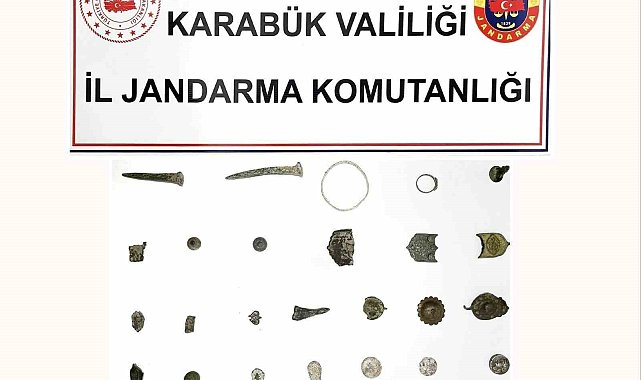 Karabük'te bir şahsın üzerinde ve aracında yapılan aramalarda 32 parça tarihi eser ele geçirildi.Edinilen bilgiye göre, İl Jandarma Komutanlığı ekipleri tarafından il merkezinde 1 şahsın üzerinde ve aracında yapılan aramada çeşitli dönemlere ait olduğu ve tarihi özellik taşıdığı değerlendirilen birer adet mühür, bilezik, yüzük, 19 adet tarihi obje, 8 adet sikke, 2 adet çivi olmak üzere toplam 32 parça eser ele geçirildi. Ele geçirilen tarihi eserler muhafaza altına alınırken, şahıs gözaltına alındı. İfadesinin ardından adliyeye sevk edilen zanlı çıkarıldığı mahkemece tutuksuz yargılanmak üzere serbest bırakıldı.