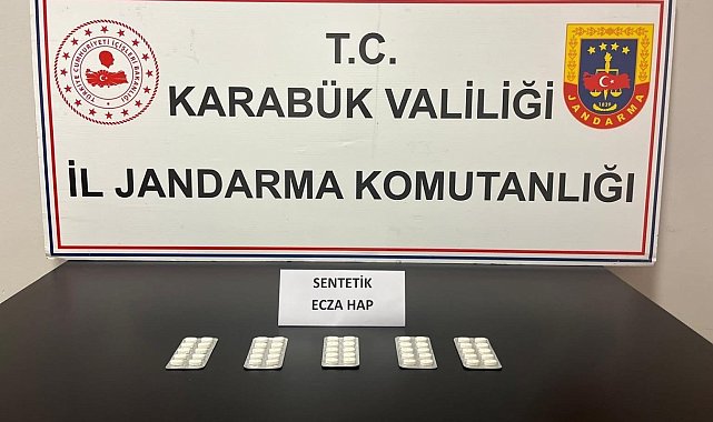 Karabük'te üzerinde 50 adet sentetik ecza ile yakalanan şahıs adliyeye sevk edildi.Edinilen bilgiye göre, Karabük İl Jandarma Komutanlığı ekiplerince il merkezinde yapılan operasyonda, 1 şahsın üzerinde, eşyalarında ve ikametinde yapılan aramada 50 adet sentetik ecza hap ele geçirildi. Gözaltına alınan zanlı ifadesinin ardından adliyeye sevk edildi.