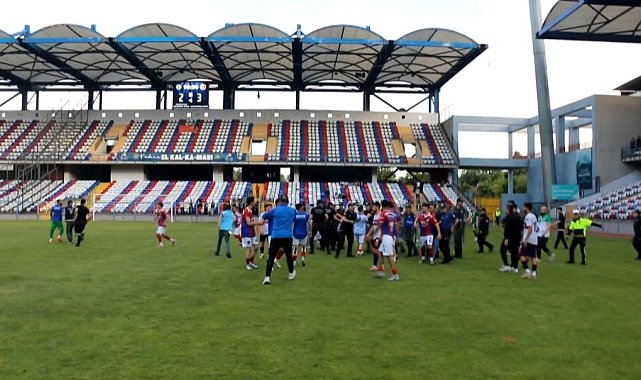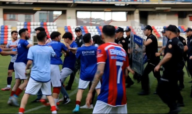 Karabük 1. Amatör Futbol Metin Güney Ligi Play Off Final maçı sonunda kavga çıktı.Safranboluspor'un Eskipazar Belediyespor'u 3-2 yendiği maçın ardından arbede yaşandı.Rakibi Eskipazar Belediyespor'u 3-2 mağlup eden Safranboluspor, Karabük 1. Amatör Ligi'nde şampiyon olarak Eflanispor ile Bölgesel Amatör Lig (BAL) Play Off maçı oynamaya hak kazandı.Dr. Necmettin Şeyhoğlu Stadyumu'nda oynanan mücadelede goller Safranboluspor'da Yusuf Çağan Semerci, Mert Murat Sönmez ve Zeynel Zorlu'dan gelirken Eskipazar Belediyespor'un gollerini Oğuzhan Kardemir ve Alper Güven attı.Safranboluspor - Eflanispor arasında oynanacak olan Bölgesel Amatör Lig Play Off - Play Out karşılaşması 25 Mayıs Pazar günü saat 16.00'da Dr. Necmettin Şeyhoğlu Stadyumu'nda oynanacak.