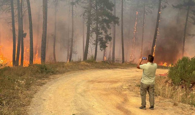 Karabük'te yaklaşık 5 saattir kontrol altına alınmaya çalışılan yangın dron ile görüntülenirken, tebdir amacıyla Safranbolu ilçesine bağlı Harmancık köyü Şamlar Mahallesi'ndeki evler boşaltıldı.Eflani ilçesine bağlı Saraycık köyünde başlayıp, Safranbolu ilçesine bağlı Harmancık köyüne sıçrayan orman yangınını söndürme çalışmaları sürüyor. Yangına 5 helikopter, 39 araç ve 126 personelle müdahale ediliyor. Rüzgarın etkisiyle hızla yayılan yangın dron ile görüntülenirken, ekiplerin müdahalesiyle Saraycık köyü mevkiindeki orman yangını kontrol altına alındı. Eflani'den Safranbolu ilçesine bağlı Harmancık köyüne sıçrayan yangın nedeniyle Şamlar Mahallesi tedbir amacıyla boşaltıldı.