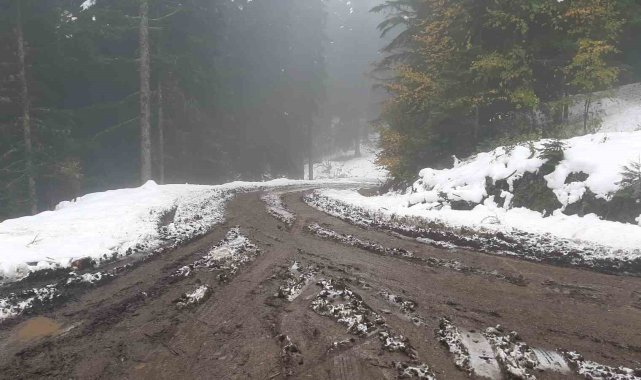 Karabük'ün Safranbolu ilçesinin yüksek kesimlerinde etkili olan kar yağışı sonrası kar kalınlığı yer yer 50 santimetreye kadar ulaştı.
