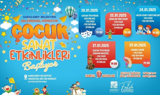 Karacabey Belediyesi, 2024-2025 öğretim yılının sömestr tatilinde çocukları da unutmuyor, tatillerini eğlenceli ve dolu dolu geçirebilmeleri için çeşitli etkinlik programlarının yer aldığı Ergün Koç Kültür Merkezi'nde gerçekleşecek olan etkinlikler, çocuklara unutulmaz bir tatil sunmayı hedefliyor.