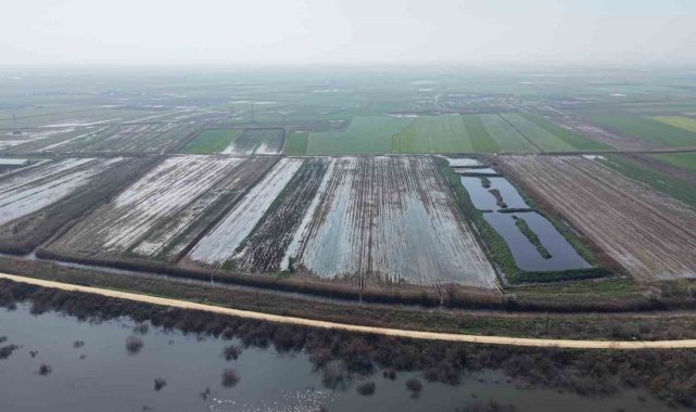 Bursa'nın Karacabey ilçesindeki çiftçiler, yeni sezon ekim için tarım alanlarını kaplayan suların çekilmesini bekliyor.