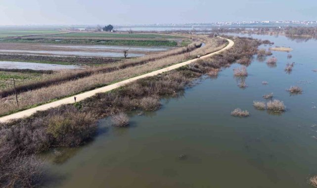 Bursa'nın Karacabey ilçesindeki çiftçiler, yeni sezon ekim için tarım alanlarını kaplayan suların çekilmesini bekliyor.Meteoroloji Genel Müdürlüğü verilerine göre, şubat ayı uzun yıllar yağış ortalaması 75 kilogram olan Bursa'ya geçen ay 129 kilogram yağış düştü.Tarımsal üretimin önde gelen ilçelerinden Karacabey metrekareye 95,3 kilogram yağış düşerken, Mustafakemalpaşa 105,8, İznik 90,8, Gürsu 100,7 Kestel 116,8 ve Yenişehir ise 65,2 kilogram yağış aldı.Yağışların ve Uludağ'daki karların erimesiyle Uluabat Gölü, son 10 yılın en yüksek seviyesine ulaşırken yaşanan taşkınlar Karacabey'de dönümlerce tarım arazisini su altında bıraktı.Karacabey Ziraat Odası Başkan Yardımcısı Ramazan Düzen, yaklaşık 2 bin dönüm tarım alanının suyla kaplı olduğunu belirterek, "Bunların bir bölümü hububat ekili arazi. Bunlarda ciddi zarar oluştu. Buğday 2 gün su içinde kalırsa bozulur ki günlerdir adeta göl içindeler" dedi.Zarar gören bu alanların tekrar dikileceğini, diğer alanlara farklı ürünler için değerlendirileceğini dile getiren Düzen, şunları söyledi:"Şu anda araziler suyla kaplı, çiftçinin eli kolu bağlı. Suların çekilmesini bekliyoruz. Domates ve biber gibi sebze ekimleri bu yıl nisan ve mayıs gibi başlar. Mayısa kadar suların çekilmesini bekliyoruz. Nisan ayında suyun çekildiği yerde çiftçilerimiz hızla ekimini yapar. Zarar gören buğday ekili arazilerde bahar dönemi ekilişlerinde mısır ve ayçiçeği olabilir. Yağışlar iyi oldu umarız verimli bir sezon geçiririz."Düzen, suların bazı buğday yerlerde hızlı çekildiğini ve ciddi zarar oluşmadığına dikkati çekerek, "Tek sorun traktörüyle tarlaya giremedi kimse. Gübre ve ilaçlarını dron desteğiyle attılar. Buralar iyi su aldı, verimi de iyi olacaktır diye düşünüyoruz" dedi.Karacabey ilçesinde 22 yıldır süt inekçiliği yapan Mustafa Çolakoğlu (62) da yıllardır hayvanlarını otlattığı arazilerin, meraların su altında kaldığını belirterek, "Haftalardır hayvanları otlatmaya çıkaramıyorum. Mecbur yemli devam ediyoruz. Yem de çok pahalı, hayvancılık yapanların belini büküyor. Balya alıyoruz mecburen ve karışık yaparak maliyet düşürmeye çalışıyoruz" ifadelerini kullandı.