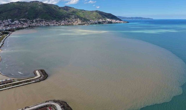 Ordu'da etkili olan yağışların ardından, yüksek kesimlerden ırmaklarla Karadeniz'e dökülen çamurlu sular nedeniyle deniz yüzeyinin rengi değişti.