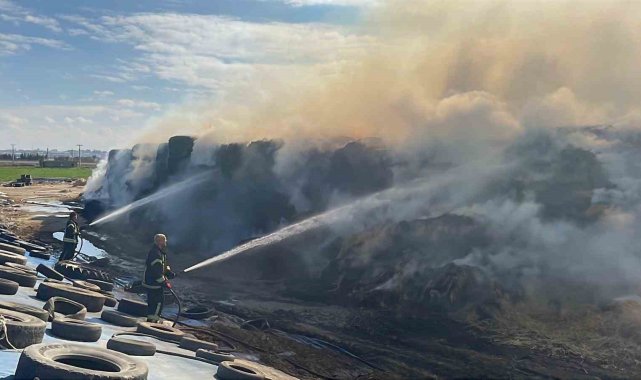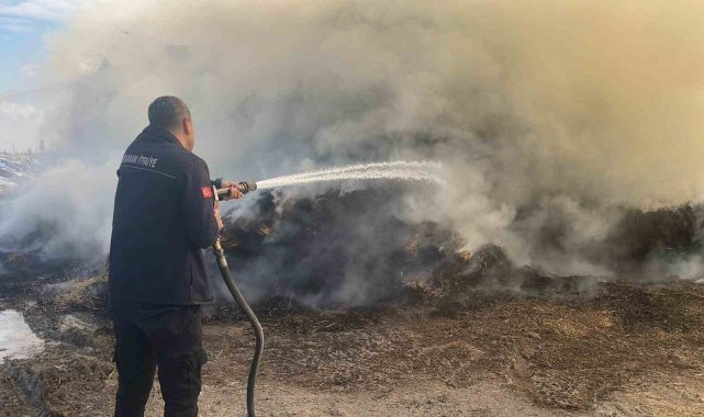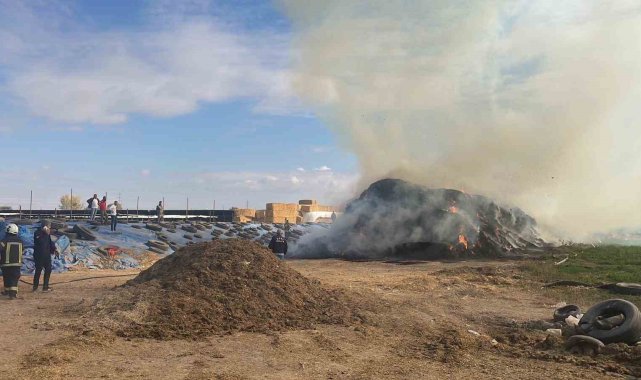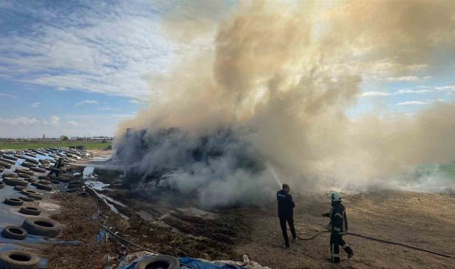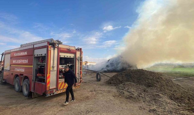 Karaman'da çıkan yangında 300 ton saman balyası kül oldu.