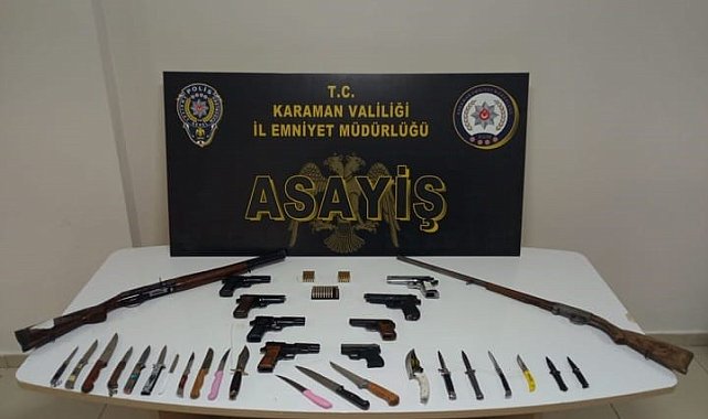 Karaman'da asayiş uygulamalarında uyuşturucu ve ruhsatsız silahlar ele geçirilirken, aranan 11 şahıs tutuklandı.