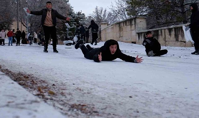 Karaman'da kar yağışı ve soğuk hava nedeniyle okulların tatil edilmesinin ardından çocuklar, karın keyfini kayarak çıkardı.