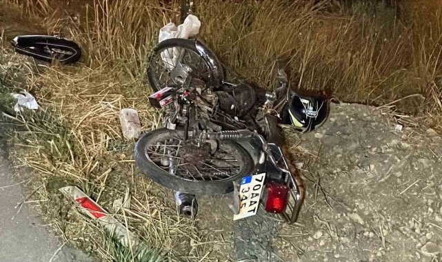 Karaman'da kontrolden çıkarak şarampole devrilen motosikletteki 2 kişi yaralandı.Kaza, Cumhuriyet Mahallesi Recep Tayyip Erdoğan Bulvarı üzerinde meydana geldi. Edinilen bilgiye göre, H.Ş. (20) idaresindeki 70 AAT 345 plakalı motosiklet, kontrolden çıkarak şarampole devrildi. Yaklaşık 10 metre sürüklenen motosikletteki sürücü ile yanındaki İ.Y. (17) yaralandı. İhbar üzerine adrese sağlık ve polis ekipleri sevk edildi. Trafik ekipleri yol üzerinde güvenlik önlemi alırken yaralılar polis ve vatandaşların da yardımıyla ambulansa alınarak Karaman Eğitim ve Araştırma Hastanesi'ne sevk edildi. Haberi alıp kaza yerine gelen yaralı yakınlarını ise trafik polisleri sakinleştirdi.Kazayla ilgili tahkikat başlatıldı.