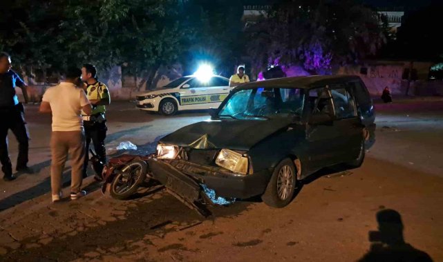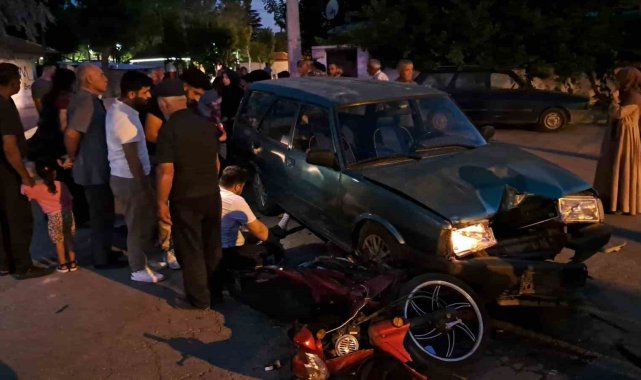 Karaman'da otomobil ile çarpışan motosikletteki anne ile oğlu yaralandı.