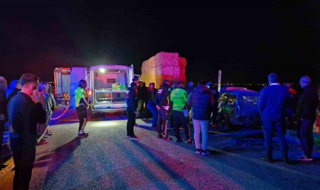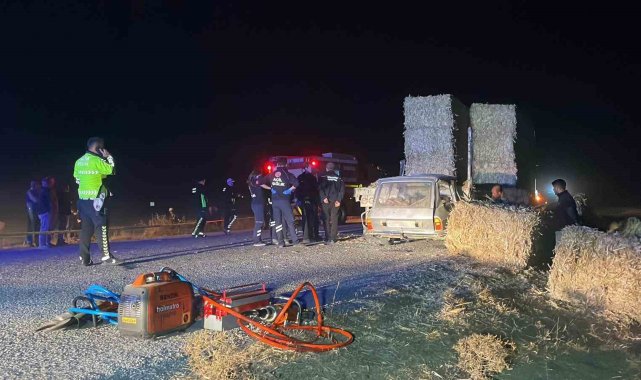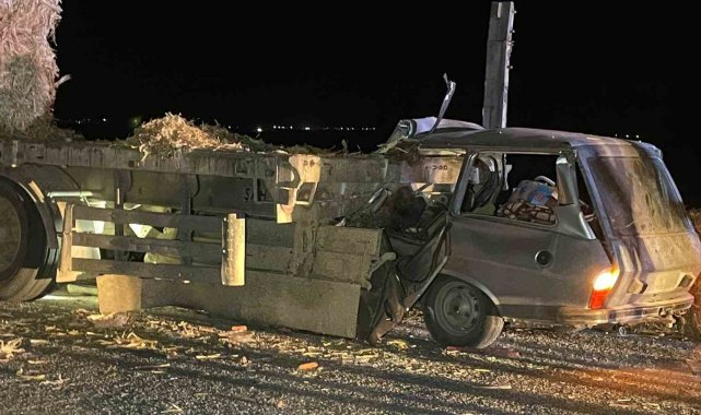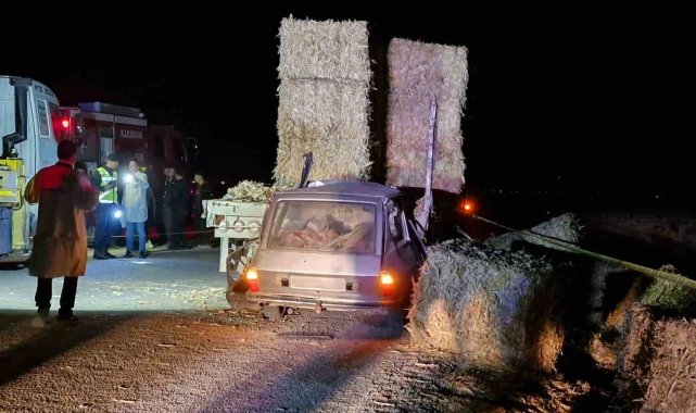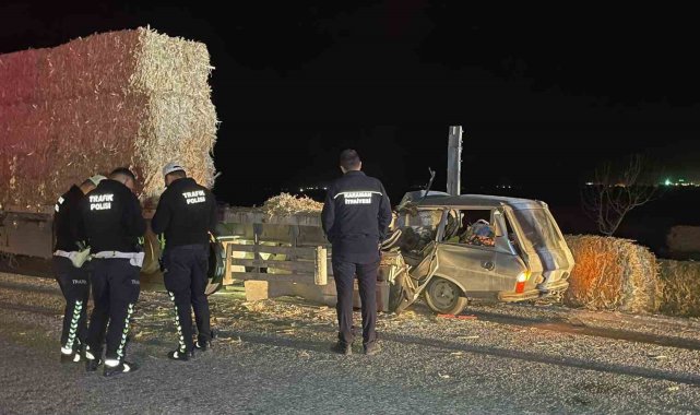 Karaman'da otomobilin yol kenarında arıza yaparak duran mısır sapı balyası yüklü tıra arkadan çarpması sonucu karı-koca hayatını kaybetti.