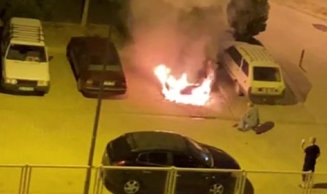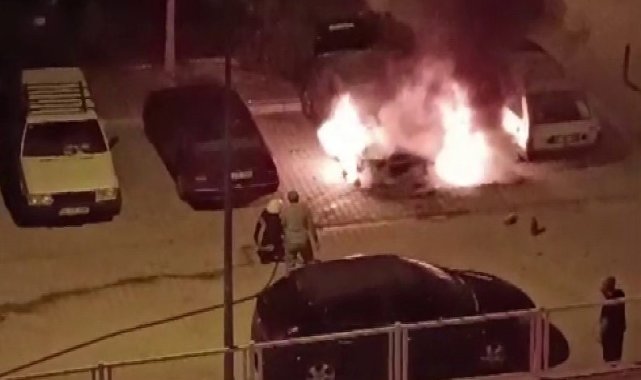 Karaman'da park halindeki otomobil alev alev yandı
