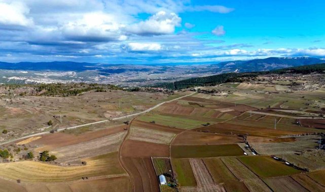 Kastamonu'nun İhsangazi ilçesinde karların erimesiyle birlikte yeşil örtüyle kaplanmaya başlayan yaylalar havadan görüntülendi.