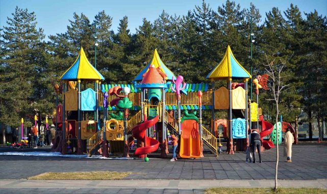 Muş'ta okulların yarıyıl tatiline girmesiyle birlikte parklara akın eden çocuklar, çeşitli oyunlar oynayarak uzun süre sonra yüzünü gösteren güneşin tadını çıkardı.