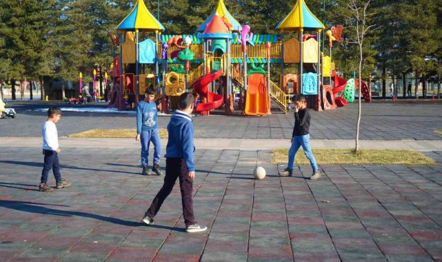 Muş'ta okulların yarıyıl tatiline girmesiyle birlikte parklara akın eden çocuklar, çeşitli oyunlar oynayarak uzun süre sonra yüzünü gösteren güneşin tadını çıkardı.Muş'ta okulların yarıyıl tatiline girmesiyle birlikte şehirdeki parklar, çocuk sesleri ile şenlendi. Uzun süren soğuk ve kar yağışının ardından yüzünü gösteren güneşi fırsat bilen çocuklar, tatilin ilk gününde parklarda doyasıya eğlendi. Parkta çeşitli oyunlar oynayan çocuklar, açık havada arkadaşlarıyla birlikte tatilin tadını çıkardı.Sıcak havanın tadını çıkarmak için arkadaşları ile dışarı çıktığını söyleyen Seyit Yasit, "Okulların tatil olması ile birlikte karnemizi aldık. Havanın güzelliğini fırsata çevirerek arkadaşlarımızla top oynadık" dedi.Karne heyecanını parkta oynayarak yaşayan çocuklardan Yusuf Yasit ise, "Karnemizi alır almaz eve götürdüm. Daha sonra arkadaşlarımı topladım ve buraya geldik. Hava ilk defa bu kadar sıcak. Arkadaşlarımız ile birlikte oyunlar oynadık. Çok güzel geçti" şeklinde konuştu.Parkta futbol oynayarak gününü geçiren çocuklardan İsa Yasit de, "Sabah erken karnemizi almak için okulla gittik. Karnemizi aldıktan sonra eve geldik. Hava çok sıcak olduğu için bizde dışarıda maç yaptık. Attığım çalımlarla arkadaşlarımı deli ettim" ifadelerini kullandı.Babası ile birlikte parka gelen çocuklardan Burak Alakuş da, "Bugün karnemizi aldık. Hava çok güzeldi, uzun zaman sonra ilk defa güneş çıkmıştı. Biz de eğlenmek için dışarı çıktık. Muş'ta AVM olmadığı için biz de tatilimizi parklarda geçiriyoruz" dedi.