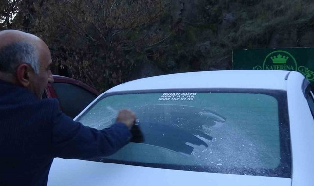 Kars'ta termometrelerin eksi 6 dereceyi göstermesiyle araçların camları dondu.Kar yağışıyla birlikte hava sıcaklığının hissedilir bir şekilde düştüğü Kars'ta sabah erken saatlerde işlerine gitmek için sokağa çıkan vatandaşların buz mesaisi de başladı. Aşırı soğuktan araçlarının camları buz tutan vatandaşlar, yaklaşık 15 dakika araçlarının ısınması ve araç camlarının buzunu temizlemekle uğraştı."Gece eksi 9'u gördü"Kars'ta havaların soğuduğunu ifade eden Hasan Topçu, "Ekim ayı çıkmadan kış kendisini hissettirdi, kasım ayına girmedik, gece eksi 7 derece olduğundan araçlarımızın camları buz tutuyor. Sabah böyle temizlemek zorunda kalıyoruz. Temizlemesek yola çıkamıyoruz" dedi.Öte yandan havaların soğumasıyla birlikte Karslılar da kışlık giysilerini giymeye başladı. Kentte hava sıcaklığı gece eksi 9, gündüz ise eksi 6 derece olarak ölçüldü. Soğuk havanın önümüzdeki günlerde de etkili olması bekleniyor.