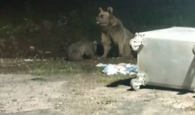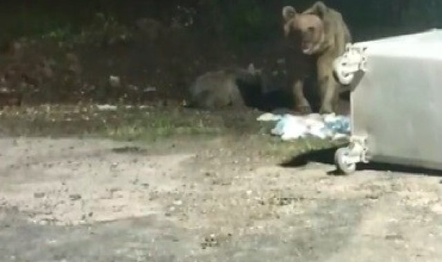 Kars'ta ilçe merkezine inen ve çöp konteynerını devirerek yavrularıyla birlikte yiyecek arayan ayıları balkondan cep telefonuyla kaydeden bir kişi anne ayının saldırısından son anda kurtuldu. O anlar cep telefonu kamerasına yansıdı.