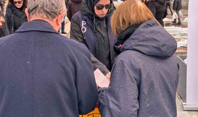 Kars İl Emniyet Müdürlüğü Asayiş Şube Müdürlüğü'ne bağlı Aile İçi ve Kadına Şiddetle Mücadele Büro Amirliği ekipleri tarafından kadına yönelik şiddetle mücadele kapsamında farkındalık oluşturmak amacıyla bilgilendirme çalışması gerçekleştirildi.