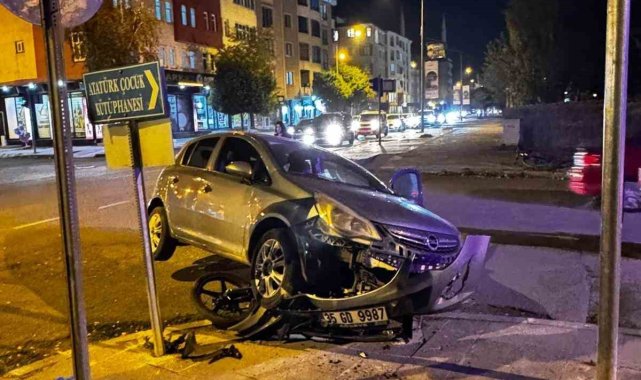 Kars'ta otomobil ile motosiklet çarpıştı. Kazada, şans eseri yaralanan olmazken araçlarda maddi hasar oluştu.