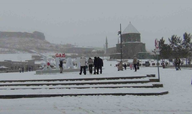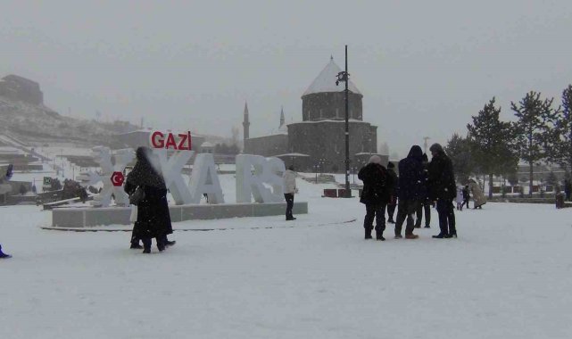 Kars, 2025 yılının son gününü yoğun kar yağış altında geçiriyor. Hafta başından itibaren etkisini artıran kar yağışı, kenti adeta "beyaz gelinliğiyle" süslerken, vatandaşlar ise kar yağışı altında halay çekti.Meteoroloji 16. Bölge Müdürlüğü'nce yapılan yoğun kar yağışı uyarısının ardından kent genelinde kar yağışı etkisini artırdı. Özellikle yüksek kesimlerde karla birlikte tipi etkili olurken, kar yağışının yarında etkisini sürdüreceği öğrenildi.Kars Kalesi'nin gezdiklerini ifade eden vatandaşlar, tarihi doku ve kar yağışının çok güzel olduğunu belirttiler.Kars'ta kar yağışı vatandaşları sokaklara döktü. Kars Kalesi'nin altında bulunan Bedesten Bölgesi'ne gelen vatandaşlar, burada sevdikleriyle birlikte karın keyfini çıkardı. Bazı vatandaşlar ise çalan müzik eşliğinde halay çekip oynadı. Kentte kar yağışı etkisini sürdürüyor.