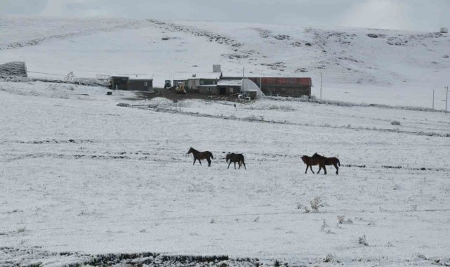 Kars'ta yüksek kesimler beyaza büründü