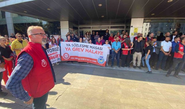 Karşıyaka Belediyesinde çalışan ve bin 227 işçiyi kapsayan toplu iş sözleşmesi görüşmelerinde anlaşma olmayınca belediye kapısına grev kararı asıldı. Anlaşma sağlanamazsa onlarca işçi 19 Kasım 2024 tarihinde greve gidecek.Karşıyaka Belediyesinde, Personel A.Ş. işçilerini kapsayan, Sosyal Demokrat Kamu İşverenleri Sendikası (SODEMSEN) ve Disk Genel İş Sendikası İzmir 8 nolu Şube arasında yürütülen toplu iş sözleşmesi görüşmelerinde anlaşma sağlanamadı. 5 aydır süren görüşmeler sonuçsuz kalınca ve SODEMSEN'den teklif gelmeyince grev aşamasına geçildi.Karşıyaka Belediyesi önünde toplanan sendikaya bağlı işçiler, grev kararını kapıya astı.Disk Genel İş Sendikası İzmir 8 nolu Şube Başkanı Deniz Şahin Gümüştekin, belediye yönetiminin SODEMSEN'i devreden çıkartması gerektiğini söyledi. Gümüştekin, "Toplu iş sözleşmesinde, tam 113 gündür ücrette teklif dahi verilmemiş ve sözleşme tıkanma noktasına gelmiştir. Herhangi bir maddi teklifte bulunulmamıştır. Son 60 günün bitmesine 28 gün kalmasına rağmen belediye yönetimince, durumun ne kadar ciddi olduğunun hala farkına varılmamıştır. İşçinin emeği SODEMSEN'in oyuncağı değildir. Eğer belediye yönetimi toplu sözleşmemizi ciddiye alıp, SODEMSEN'i devreden çıkartmaz, ciddi bir teklif vermezse; yani bizleri açlık sınırının altında çalıştırmaya ısrar ederse, biz Karşıyaka Belediyesi Personel A.Ş. işçileri; yani tam olarak bin 227 işçi, 19 Kasım 2024 Salı günü bu belediyenin önüne iner, grev halayınıçekeriz"dedi.