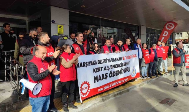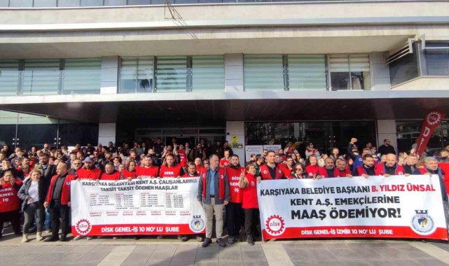 Karşıyaka Belediyesi iştiraki Kent A.Ş.'de çalışan 540 işçi, 7 aydır biriken maaş alacaklarının ödenmemesi ve randevu iptaline tepki göstererek belediye binası önünde eylem gerçekleştirdi.