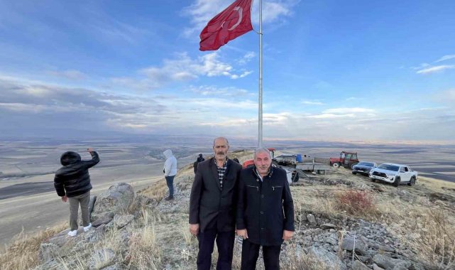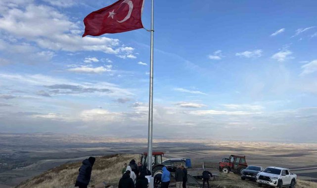 Karslı köylüler Ermenistan sınırında bulunan 2 bin 500 rakımlı Karakuzu Dağı'na Türk bayrağı dikti.