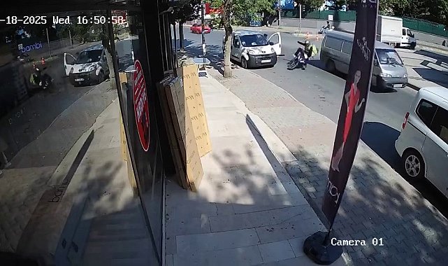 Kartal'da seyir halinde olan motosiklet sürücüsü, yol kenarında duran aracın kapısının aniden açılmasıyla yola savrularak yaralandı. Kaza anı güvenlik kamerasına yansıdı.Kaza, Kartal Soğanlık Mahallesi Millet Caddesi'nde 18 Haziran tarihinde meydana geldi. Edinilen bilgiye göre, seyir halinde olan hafif ticari araç sürücüsü yol kenarında durarak aniden kapısını açtı. Bu sırada yoldan geçen motosiklet sürücüsü açılan kapının çarpması sonucu yola savruldu. Çarpmanın etkisiyle yere düşen motosiklet sürücüsünün ayaklarının kırıldığı öğrenildi.Kaza anı bir iş yerinin güvenlik kamerasına yansıdı. Görüntülerde, yere savrulan motosiklet sürücüsünün seyir halindeki başka bir aracın altında kalmaktan kıl payı kurtulduğu görüldü.