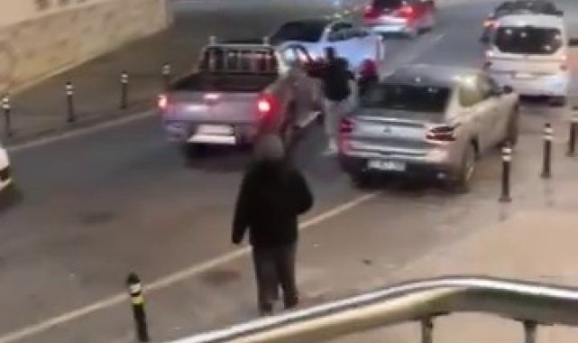 Kartal'da iki sürücü arasında yol verme tartışması yaşandı. Sürücülerden biri öfkelenerek diğer sürücünün aracına tekme attı. O anlar cep telefonu kamerasına yansıdı.