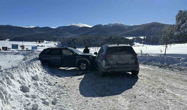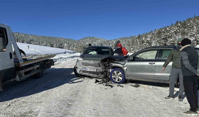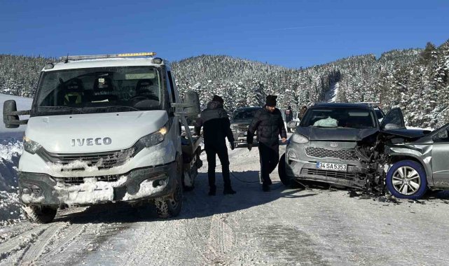 Bolu'da Kartalkaya Kayak Merkezi yolunda, kar yağışı ve buzlanma nedeniyle kayganlaşan yolda iki cip kafa kafaya çarpıştı. Yaralananın olmadığı kazada araçlarda maddi hasar meydana geldi.