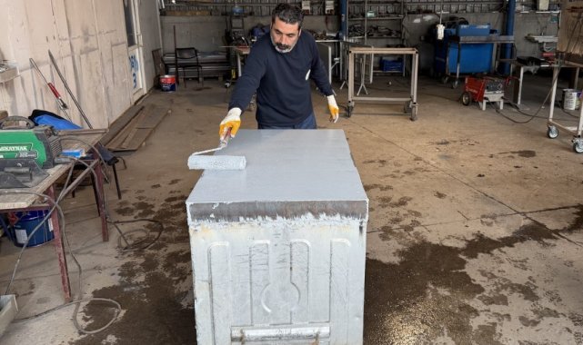 Kartepe'de eskiyen çöp konteynerleri onarılarak yeniden kullanıma sunuluyor